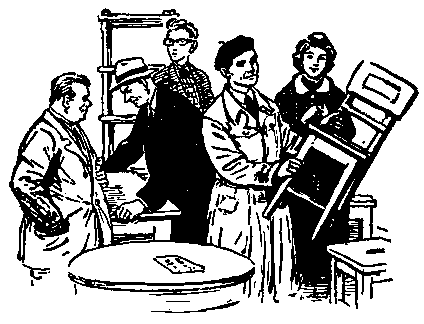 Но вот директор мебельного магазина, оказывается, вовсе не хотел, чтобы мы его приветствовали, и не встретил нас тем радостным восклицанием, о котором я упоминал в своей корреспонденции. Нет, он не закричал от счастья: «Ах, каких инициативных ребят воспитывают московская школа и московский пионерский отряд!» Наоборот, он очень долго сомневался, покачивал головой и говорил, что нам бы хорошо отправить свою мебель не в магазин, а на выставку «Умелые руки». Но мы объяснили ему, что делали свои этажерки, столы и стулья не для выставок, а для людей: чтобы им было на чем сидеть, на чем пообедать и куда поставить свои книжки.