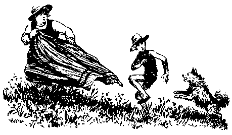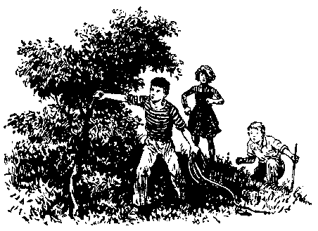 Мы отвязали от столбов верёвку. Саша ловко, в два приёма, сделал на конце петлю и покрутил ею в воздухе. Потом он спрятал «лассо» под рубашку, и мы помчались с холма вниз, к реке.