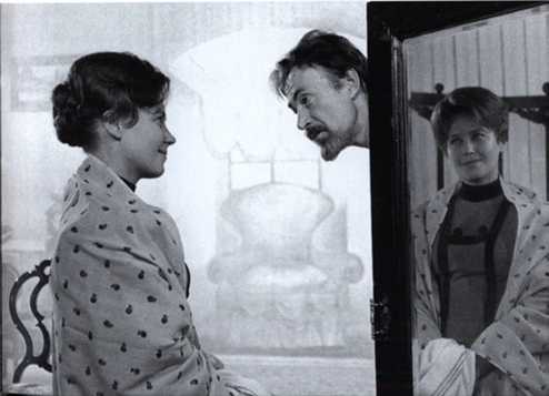 МХАТ. Вверху: Ия Саввина и Дмитрий Брусникин в спектакле Новый американец" (по произведениям С. Довлатова). 1994 г. Внизу: в спектакле «Рождественские грезы» (по пьесе Н. Птушкиной). 1998 г. Фото И. Александрова.