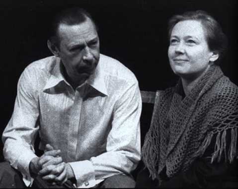 Внизу: с Полиной Медведевой в спектакле “Московский хор" (по пьесе Л. Петрушевской). 1988 г. Фото И. Александрова.