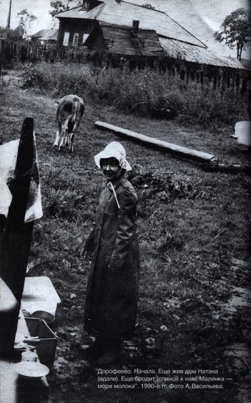 Внизу: Элла Бруновская, Владимир Васильев, Ия Саввина у дома Васильевых в деревне Рыжевка. 1990-е гг.