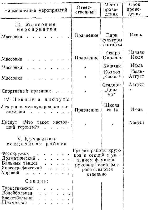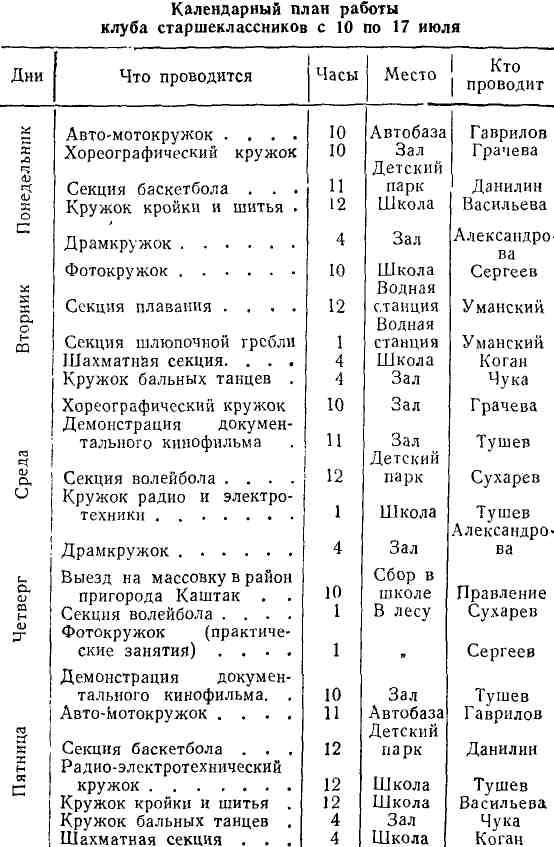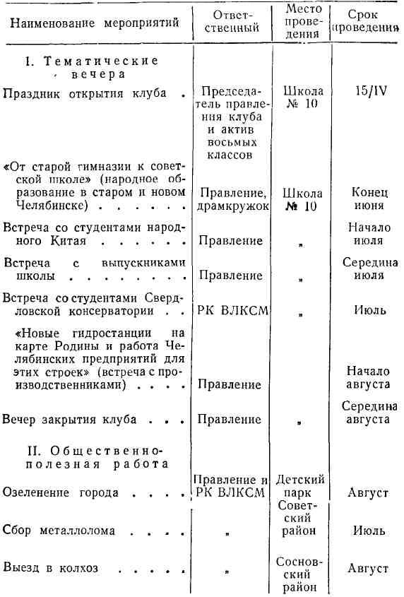 3. Правление клуба совместно с активом (старосты кружков, их заместители и другие) составляют перспективный план на весь период работы клуба и календарные планы на неделю.