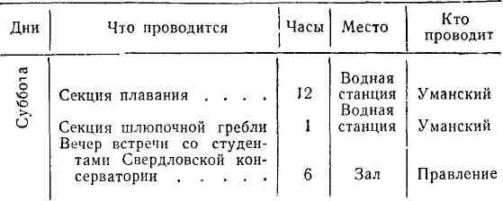 6. Клуб работает ежедневно, кроме воскресенья, с 10 часов утра до 6 часов вечера. Еженедельно вечера проводятся по субботам с 6 часов до 11 часов вечера.