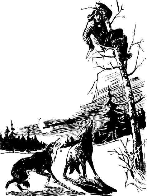 Василий в это время сидел уже на вершине березки. Но слишком тонкое было деревцо, чтобы удержать на себе взрослого человека. Березка склонялась все ниже и ниже. Он еле держался, силы покидали его. Наиболее злобные звери беспрерывно подпрыгивали, пытаясь стащить охотника с дерева. Тот отбивался ножом и поранил уже несколько волков. Звери стали осторожными. Они расселись недалеко от березки, надеясь, что добыча сама спустится к ним на землю.