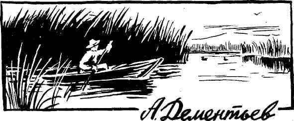 Алексей Дорогин возится с подвесным мотором, а мы выбираем себе лодки, шесты, весла. Лодок много, на любой вкус: большие и малые, узкие и широкие, потемневшие от времени и многократного смоления и совсем новые, недавно покрашенные. В лодки настилаем сухого тростника, укладываем рюкзаки, чучела, ружья. Алексей проверяет и регулирует мотор, наливает в бутылки запас бензина.