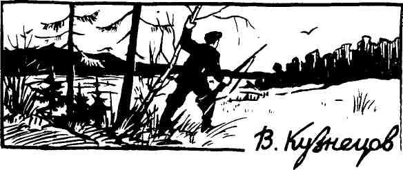 В СУББОТУ вечером, накануне открытия осеннего сезона охоты, я с товарищем сел в пригородный поезд Челябинск – Шумиха. Ехали до станции Каясан. Оттуда по знакомой дороге направились к небольшому, почти сплошь заросшему тростником, озеру Улянды. За последние годы озеро сильно высохло, и птицы на нем было мало. Решив, что делать здесь нечего, мы пошли на соседнее глубокое и неприветливое озеро с пугающим названием – Могильное.