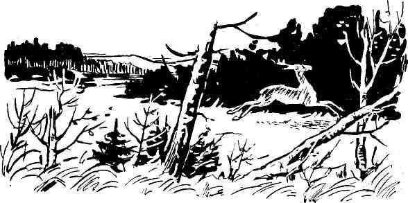 Чуть набитая дорога, то и дело петлявшая среди сплошь заросших подлеском колков и сухих болот, привела нас вскоре к небольшому массиву парового поля. На его южной окраине за редкими стройными березами начинались Волчьи болота. Они тянулись с севера на юг, окаймленные по краям совершенно не видевшим топора березняком, осинником, черноталом.