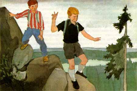 – Ушли… – злобно прошептал в кустах Вилли. – Вот теперь самое время попортить им красоту. Вставай, быстро! – приказал он, как только ребята сбежали по склону вниз. – Держи нож. Режь палатку. Ну, чего стоишь? Вот так… Понял? Вот так!