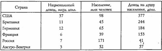 Таблица 5. Национальный доход, население и доход на душу населения великих держав в 1914 г.