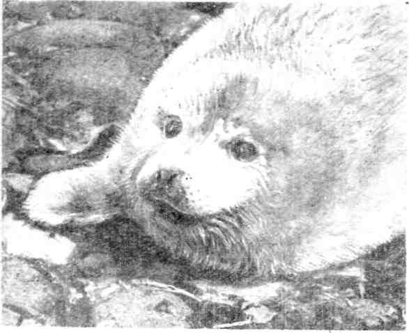 А вот другие фотографии. Видите, какое стройное, обтекаемое тело у этого тюленя? На черном фоне меха по бокам, на пояснице и вокруг шеи – широкие белые полосы. Они напоминают сложенные крылья громадной птицы. За это тюленя называют крылаткой. Он легко выбрасывается на льдины, а с обрыва ныряет, почти не сделав всплеска.