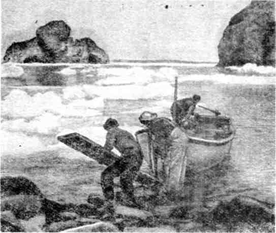 Экспедиция – это прежде всего работа. С утра до полуночи. Часто бывает, весь день плаваем на боте вдоль берегов, порой и в неласковую погоду, охотимся за тюленями, а вечером до самой темени возимся с ними. Снимаем шкуру, варим, очищаем черепа.