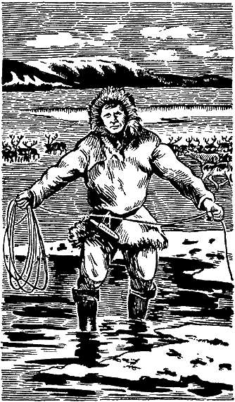 Пастухи быстро окружили группу оленей, в которой находился примеченный, и направили их между Николкой и Шумковым. Серая лавина, точно мутная река, бешено мчалась мимо Николки, и олень с кривым рогом исчез в этой лавине. Николка швырнул маут наугад в густой кустарник рогов, но вместо круглой петли на конце своего маута увидел спутанный клубок. И в то же мгновенье Шумков поймал нужного оленя. Во второй раз Николка опять кидал маут наугад, и опять получился вместо петли клубок, который хлестанул важенку по боку.