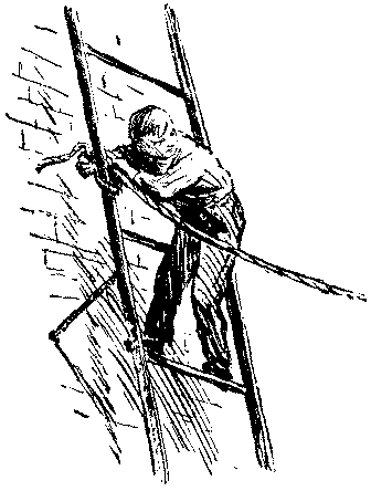 Тем временем Генка влез на пожарную лестницу и отвязал воздушную дорогу.
