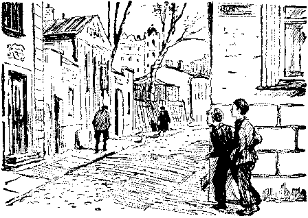 Беспризорник выскочил из рядов, свернул в переулок и бежал, путаясь в длинном рваном пальто. Он юркнул в проходной двор, но Миша не отставал от него и наконец догнал на каком-то пустыре. Он схватил его за пальто и, тяжело дыша, сказал: