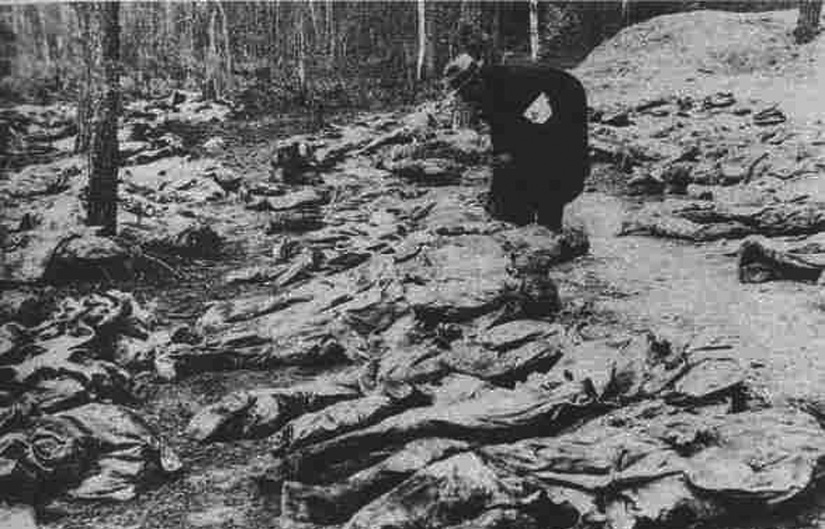 Штабеля жертв в Катыни, складированные с немецкой пунктуальностью
