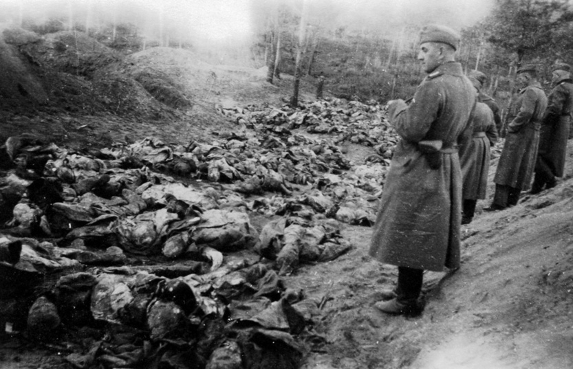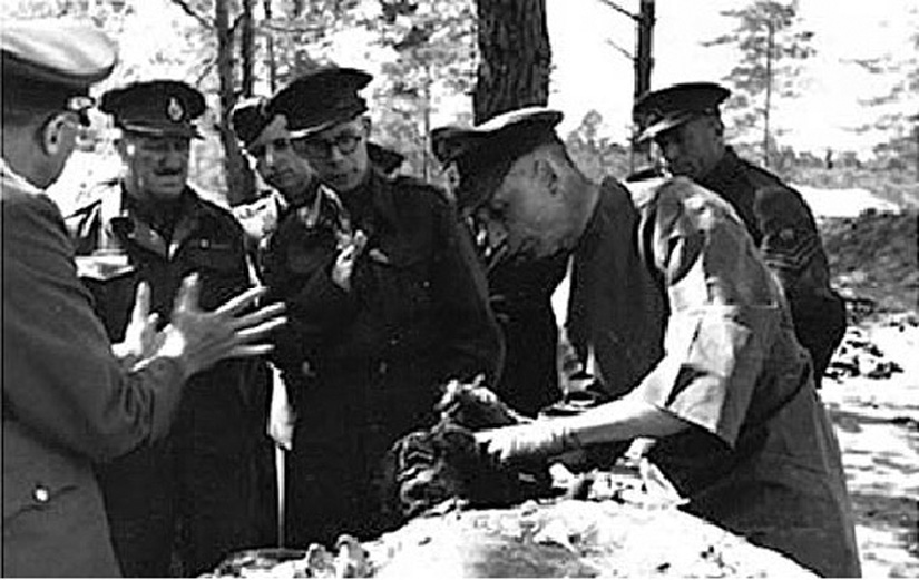 Немцы рассматривают трупы поляков в Катыни.1943 г.