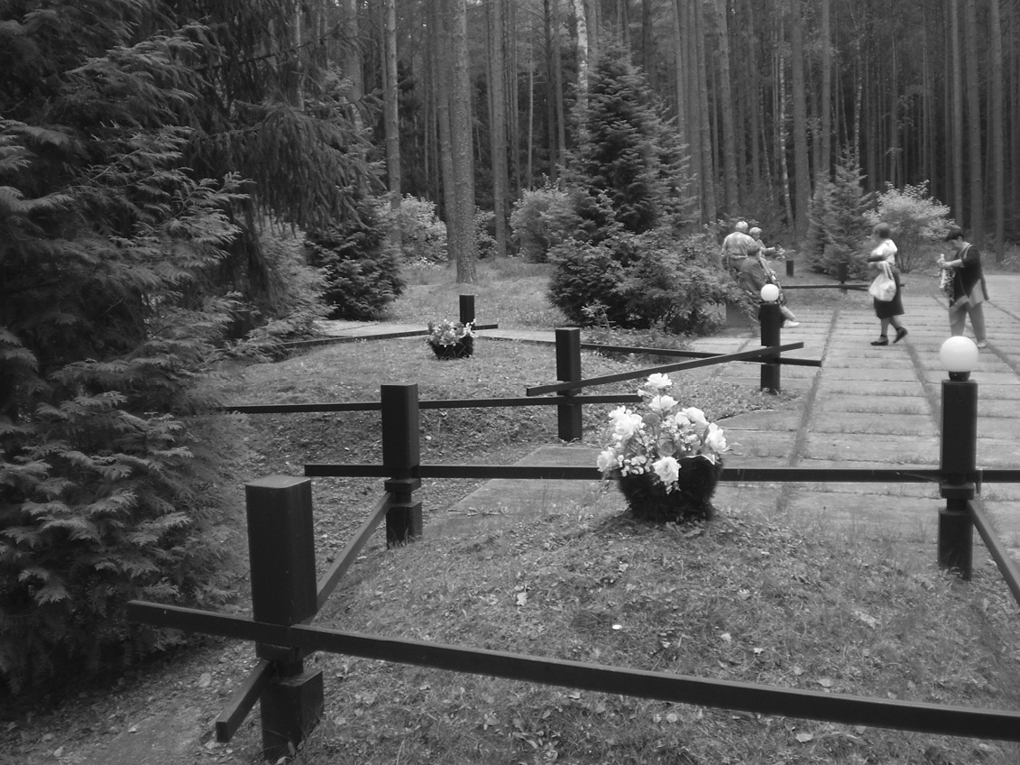Скромный мемориал советским военнопленным, погибшим в Катыни от рук фашистов