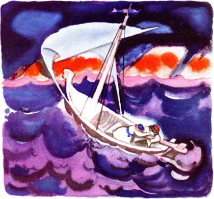 Застала их на море буря. Унесла она лодку далеко от берега. Как далеко, парни не знали. Знали только, что в эту даль никто не приплывёт за ними, никто не найдёт их в этой дали.