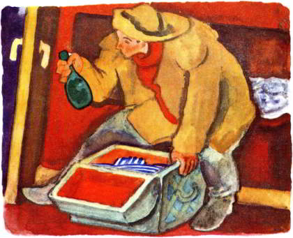 Прошло какое-то время, сундучок опять начал качаться, а потом его крышка открылась. Бутылку взял в руки матрос.