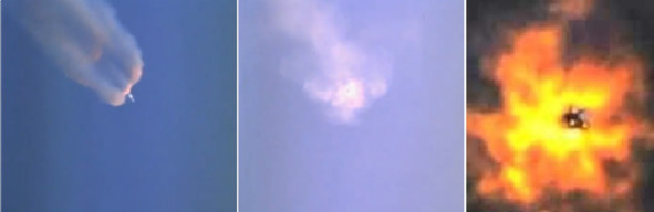 Кейсинг первым, публично и четко заявил, что американские актеры в космос не выходили и некуда не летали. Его мнение, это опять же не догадка фантазера, а, скорее всего, это пересказ информации полученной от людей, которые работали непосредственно в проекте по фальсификации «лунных полетов». Автор книги прекрасно понимал, что старт ракеты наиболее впечатляющее зрелище, которое убедило многих в реальности американского лунного шоу! Но подробностей этапов фальсификации на старте ракеты Кейсинг не знал. Как совмещали американцы тотальное облегчение массы ракеты и менее мощные ЖРД с меньшей тягой об этом и сейчас можно пока только догадываться. Бесспорным является только тот факт, что в момент полета этой ракеты «Сатурн-5» и ракеты «Сатурн1-В» наблюдались с Земли вспышки, напоминающие обычный взрыв средней части ракеты. При наличии таких взрывов, череды вспышек при каждом старте указанных ракет, головная часть ракеты не уничтожалась. Такое чудо возможно только при управляемом подрыве средней части ракеты, перед которым первая ступень, ее разрушение не наблюдалось с Земли, и головная часть ракеты были предварительно отсоединены от второй, третьей ступени и адаптера, в которых не было ни двигателей, ни топлива. Если бы таковые были, то взрыв бы закончился трагедией и прекращением полета. Управляемый, направленный взрыв гарантирует разрушение средних, цилиндрических частей ракеты на более мелкие фракции, что гарантирует невозможность наблюдения падения части огромной ракеты на Землю. Вот этот момент ярких вспышек, очень похожих на горение магния, на начальном этапе полетов ракет «Сатурн-5» и «Сатурн-1В». Кадры с указанием времени демонстрации «2:16», «2:52» и увеличенный фрагмент кадра «2:52» из фильма: «1969 Apollo 11 Saturn V launch».