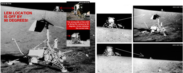 В крайнем случае, вывод Вайта не так очевиден, как кажется. Если макеты в песочнице могли неправильно ориентировать к направлению освещения, то в рассмотренных Джеком случаях это не так очевидно, как он пытается представить. Джек среди фотографий нашел фотографию НАСА AS12-46-6740 (справа), где изображение «Сервейера» оказался в тени. Казалось, Джек нашел реальный компромат на американских мошенников? Ведь на фотографии НАСА AS12-48-7133 (слева) этот же «Сервейер» хорошо освещен. Но нет, американские обманщики легко выпутаются из этих обвинений. Фотография AS12-46-6740, скажут обманщики, выполнена в первый день прилунения.