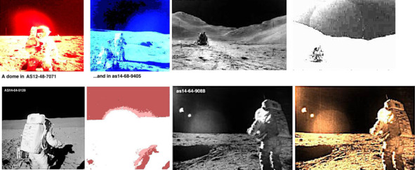 О реальной сущности световых пятен на черном фоне «лунного» неба пока можно только догадываться. Нельзя исключать и другой причины появления таких аномальных оптических эффектов. Возможно, что рассевание света проходило на стеклянных перегородках, которые отделяли фотографа от «лунной поверхности» с куклами или с актерами в зависимости от ситуации и эпизода съемки. При таком рассеивании световых лучей, которое происходит на некотором удалении от фотографа, на кадрах будут проявляться ореолы с четкими контурами и границами, такие же лучи. Рассеивание света на линзе фотоаппарата или попадание света под углом близким к 90 градусам в кадре возникает расплывчатое белое пятно либо частичная или полная засветка, при отсутствии фильтра.