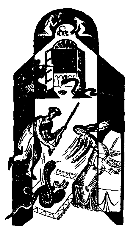 Почти тотчас же явилось то и другое. Поставив чашку с молоком у окна, индус принялся наигрывать тихонько на дудке какую-то однообразную, монотонную мелодию, прерываемую по временам резкими пронзительными звуками. Вскоре край шелковой шали стал приподниматься, и плоская голова кобры высунулась из-под него, затем мало-помалу отвратительный гад, покинув свою уже безжизненную жертву, выполз весь из-под шали, невольно поддаваясь этому музыкальному призыву, как бы действительно зачарованный этими звуками. Движения змеи в это время были до такой степени ритмичны, что казалось, будто ее тянут какой-то невидимой нитью.
