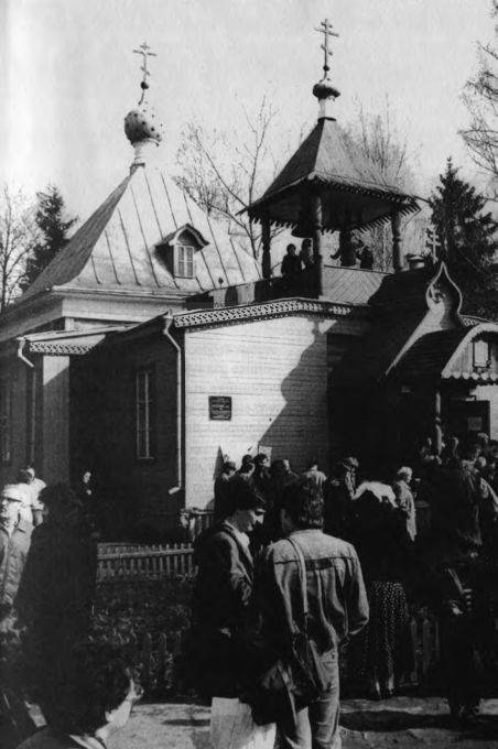 В августе 86–го года, когда политическая атмосфера в стране стала спокойнее и из‑за отпусков в приходе было не так много народу, батюшка неожиданно предложил мне поехать с ним в Загорск (Сергиев Посад). Я с радостью согласился. Мы поднялись в горку за Лаврой, углубились в пыльный переулок и через некоторое время остановились перед глухим забором. На стук открыла совсем древняя старушка. Батюшка очень тепло, по–родственному с ней расцеловался, стал расспрашивать о ком‑то, кого я не знал. Мы прошли через террасу, низкие сени и оказались в двух светлых крохотных комнатушках, стены которых были завешаны иконами. За столом сидели две такие же старые женщины. После очень сердечного, хотя и короткого разговора, все поднялись, повернулись к иконам и вместе с батюшкой отслужили панихиду по каким‑то, очевидно, очень близким им людям. Потом старушки заторопились нас кормить, и пока они возились на кухне, отец Александр поведал мне тайну этого дома. Оказывается, в 30–40–е годы тут был подпольный женский монастырь, и все эти старушки – последние монахини, оставшиеся жить здесь и после того, как катакомбная (нелегальная) Православная Церковь в конце войны вышла из подполья. В этом доме во время войны, сидя под образами рядом с настоятельницей монастыря схиигуменьей Марией, маленький Александр впервые прочёл Библию; здесь ему привили любовь к православной традиции, к богослужению. Мы вышли во двор, обошли дом. Все здесь было для отца Александра родное, даже склонённое над ручьём дерево, на которое он в детстве любил забираться с книжкой, чтобы побыть одному.