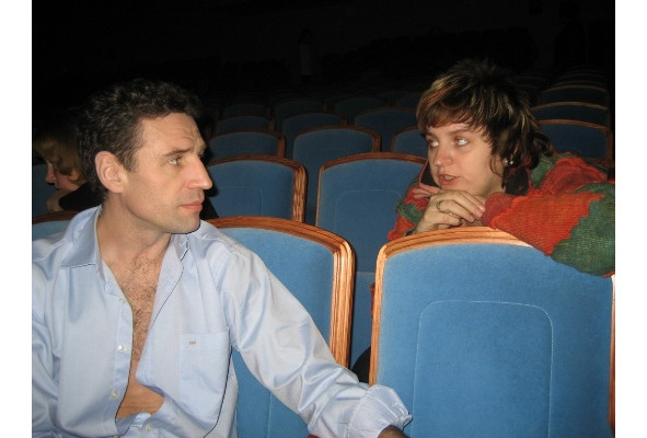 Рис. 55. На фото: композитор Юлиана Донская и актер Виталий Абдулов играют в переглядки. Во время съемок к/ф «В начале были ангелы».