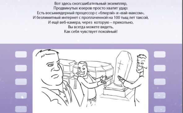 В раскадровке приняты условные обозначения вида «огурец». Это такие значки, название коих иллюстрирует читалка: «Палка, палка, огуречик, вот и вышел человечек».