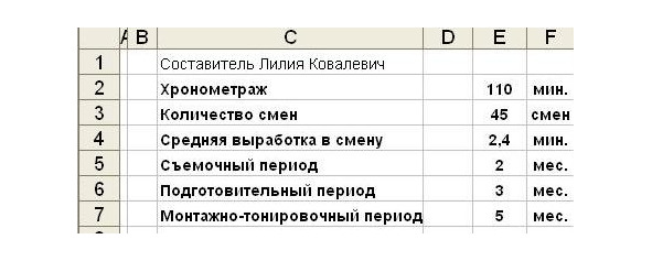 Лилия Ковалевич – это как раз замечательный кинопродюсер. То, что мы видим на фото – это КПП, предваряющий смету и поэтому минимальный. Но обычно КПП более развернутый и отображает в деталях: