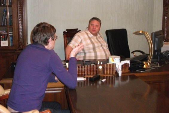 Рис. 10. После интервью ТВ—каналу. Андрей Ангелов, Дм. Величко, журналисты (слева направо).