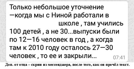 – 1975 год. В этой школе училось 30 детей, – обычно добавлял папа. – Первый класс – это 3 человека, второй класс – 2 человека, седьмой класс – 4 человека, и так далее…
