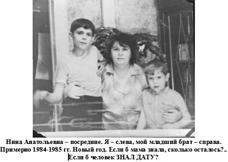 Когда маме поставили диагноз – то она запретила кому-либо говорить об этом. Даже родной брат и её родная мама (см. фото выше)… – о смерти узнали лишь в день смерти… Её положили в хоспис, как бы на химию. Но папа и брат знали, что всё бесполезно, 4-ая стадия какого-то редкого вида рака, счет как-то ВДРУГ стал идти на дни… И мама сама, наверное, знала… КАКОВО ЭТО – САМОМУ ЗНАТЬ?.. Я тоже знал, хотя и не верил. Я мучился от бессилия, потому что ничем не мог помочь, даже прилететь не мог. И глушил себя в работе за зарплату, а вечером – дописывая книгу «Азбука 18+».