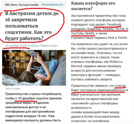 Рис. 11. В Австралии детям до 16 лет запрещают иметь аккаунты в соцсетях, – передаёт BBC. Первая страна в мире, кстати!