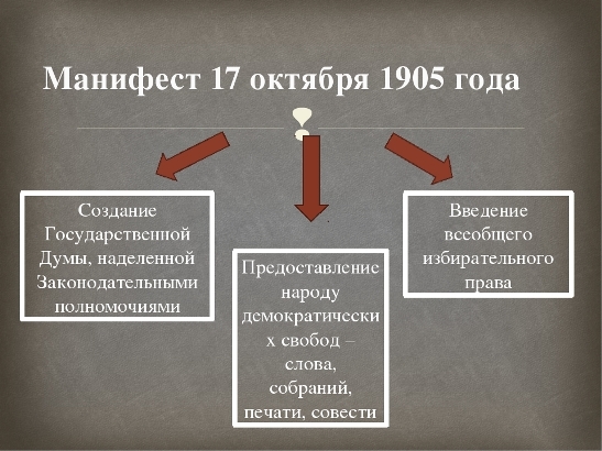 Принята Николаем II – последним российским императором, под нажимом либералов, пытающихся остановить Первую русскую революцию. И изменить ход Истории.