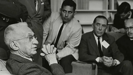 Рис. 15. Керенский жил в США, где написал большой мемуар о событиях 1917 года. Уйдя в мир иной в глубокой старости. На фото: обращение Александра Фёдоровича к советской молодежи в 1964 году (слева, в очках). Ему – 83 года.