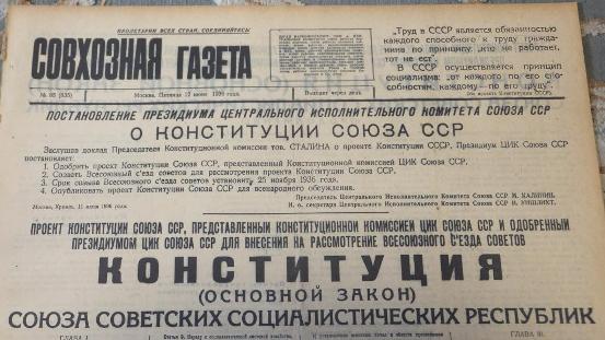 Рис. 20. Текст Конституции 1936 года, в одной из советских газет.