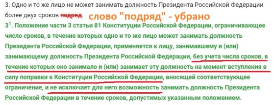 Рис. 25. Так обнуление Путина прописано в поправке (2020) к Конституции-1993.