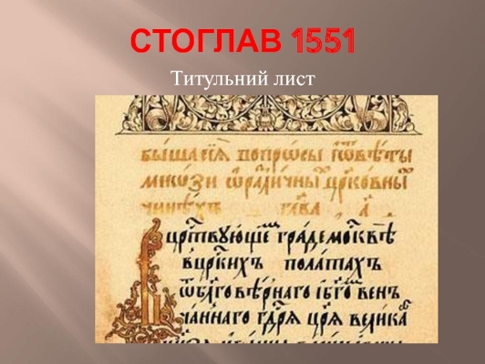 Рис. 9. Конституция Ивана Грозного, принятая на Стоглавом соборе. Титульник.