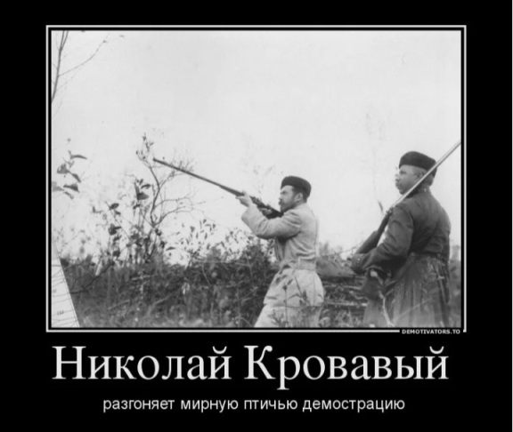 Рис. 1. Николай II на охоте – подлинное фото. Надпись – как насмешка над теми, кто троллит царя, которого большевики заставили отречься от престола. Примерно такими же методами, как путинское ФСБ принуждает дать любые показания, любого человека на любого человека. Но, прозвище «Кровавый» – вовсе не придумка большевиков, а Его царственная суть. Ходынское поле… Русско-японская война… Первая мировая… – и сие лишь верхушка порочного айсберга, – то, что вот прямо на виду. Народной крови на товарище Николае Романове прилично много.