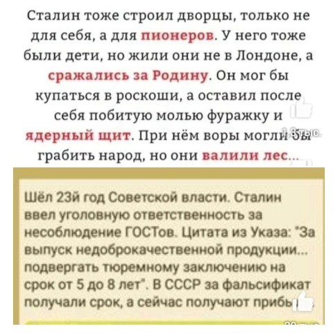 Есть расхожая фраза: Сталина на этих тварей нет. Речь о путинской клике разных уровней, что погрязли в воровстве, двойных стандартах и лжи. Замечу так: пусть лучше эти твари будут тварями, чем снова появится Сталин.