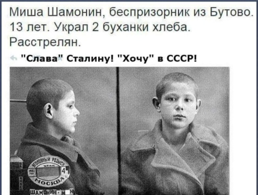Рис. 5. Не факт, что на фото Миша Шамонин, что он из Бутово, что украл булку хлеба, и что был расстрелян. Но, очень точная иллюстрация всей эпохи. Фанаты Кобы заявляют: «Сталин расстрелял миллионы, но прирастил население СССР на десятки миллионов». Ха-ха, хотя ни черта не смешно.