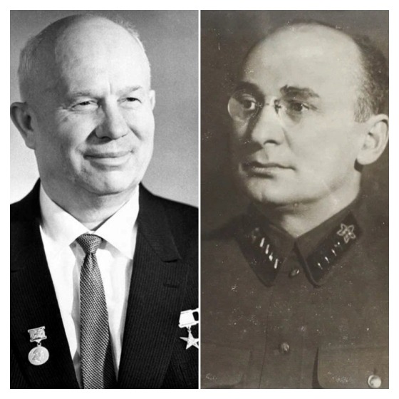 Рис. 6. Фотоколлаж: Хрущёв (слева, с медалями) и его политический конкурент Берия. До момента смерти Сталина – коллеги. Лаврентий Берия подло арестован и расстрелян человеком, с которым он работал 20 лет!