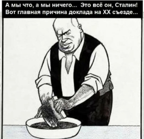 4 – Хрущёв замазан в репрессиях не меньше Берии или Маленкова. Никита Сергеевич развенчал культ, будучи плоть от плоти его. Мавр сделал дело, и должен уйти: диалектика политики.