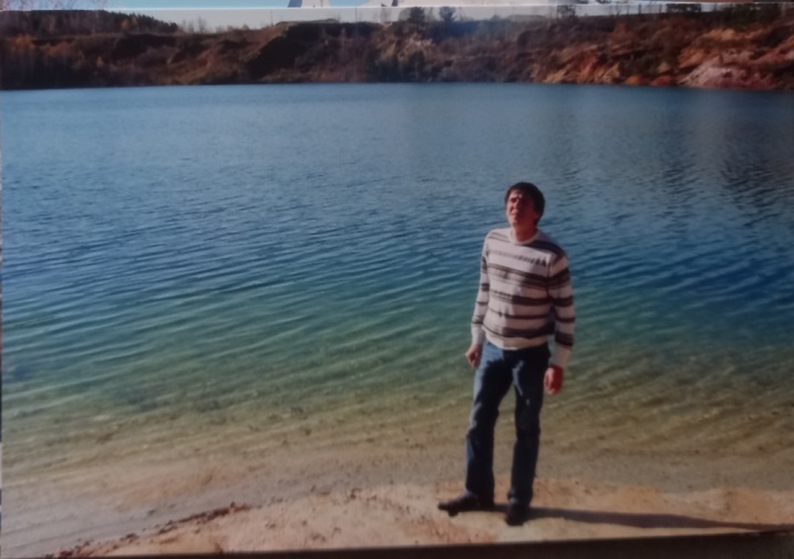 Рис. 1. Не Швейцария, а Западная Сибирь. Чистейшее озеро цвета морской волны. Озеро без названия, кстати. Позирует: Ангелов.