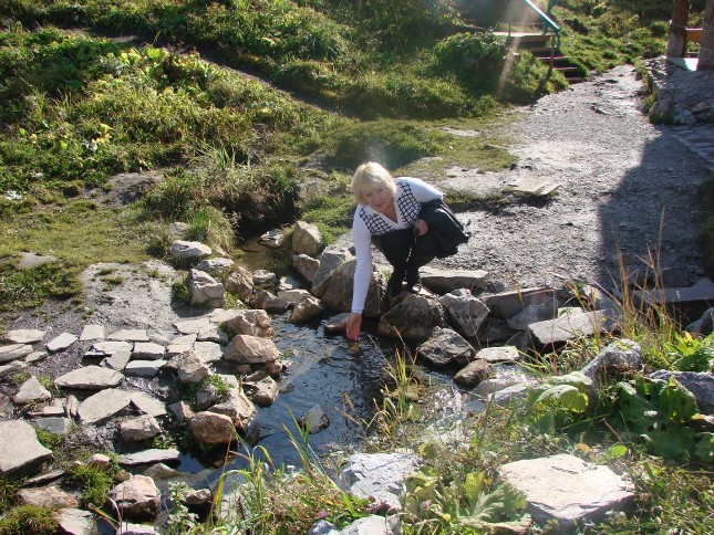 Рис. 5. Горный родник, из коего Ангелов пил примерно 200 (двести) раз за свою жизнь, в окрестностях родного Кукуева. Западная Сибирь. Позирует: Ирина Ангелова.
