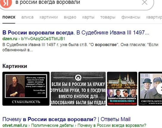 Рис. 1. Первые данные по запросу «В России всегда воровали». Z-Яндекс, 2025 г.
