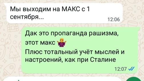 Рис. 3. Ответ от бати, работающего в гос. учреждении. И мой ответ. 08.2025.