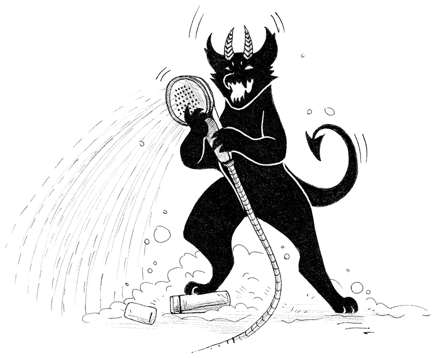 Со стороны ванной раздался сдавленный женский вскрик, потом плеск воды и демонический хохот Фамильяра. Извинившись перед печальным Гэндальфом, я рванулся на выручку несчастному котику, но застал совершенно иную картину маслом.